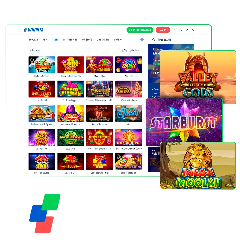 Most slot games that you can see on Winnita also have a demo mode, which is created for testing out the game without risk. In the demo mode, you will be given a virtual balance for playing that will not take your real money, but you will not be able to win real money in demo mode either. To check it out: